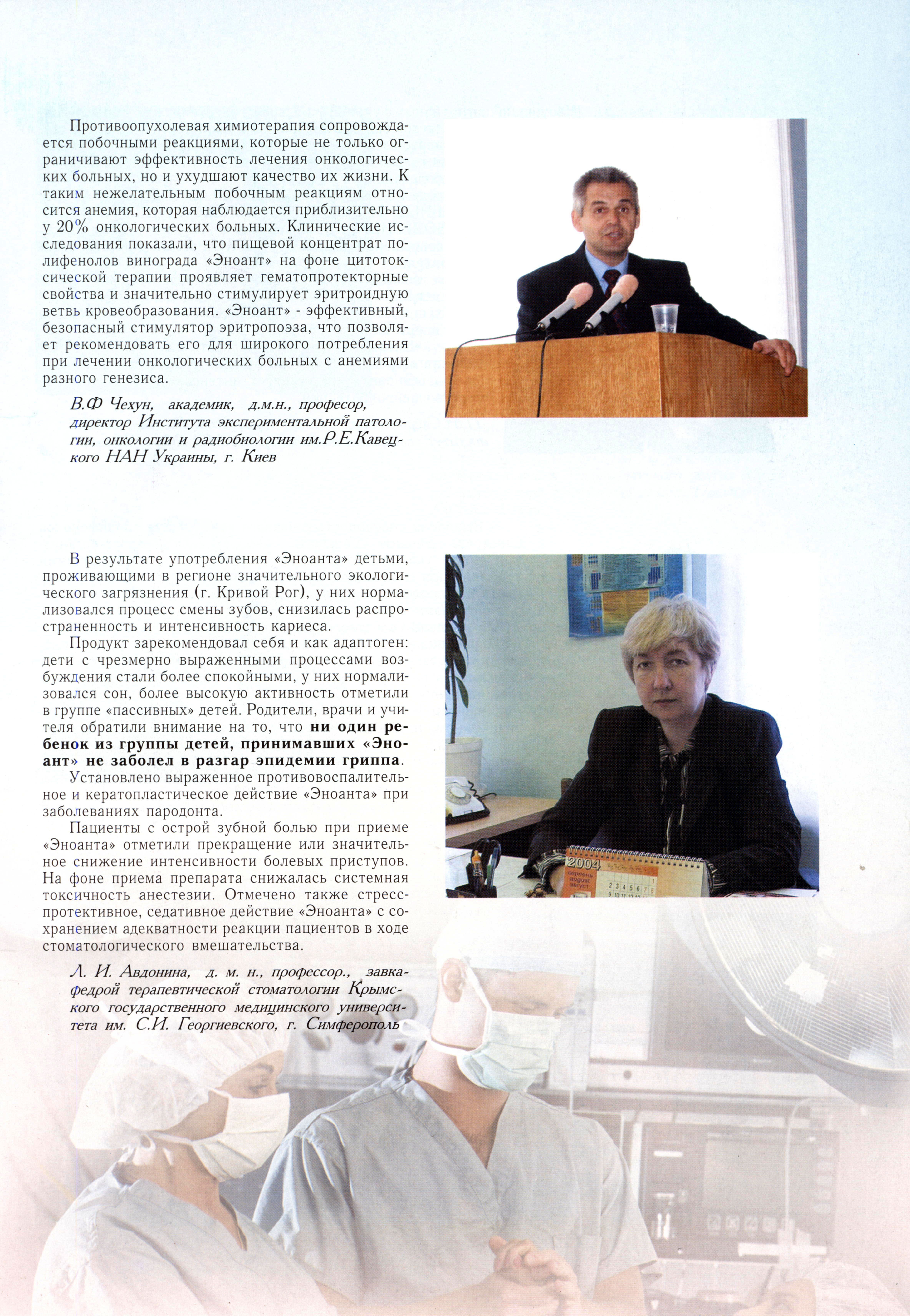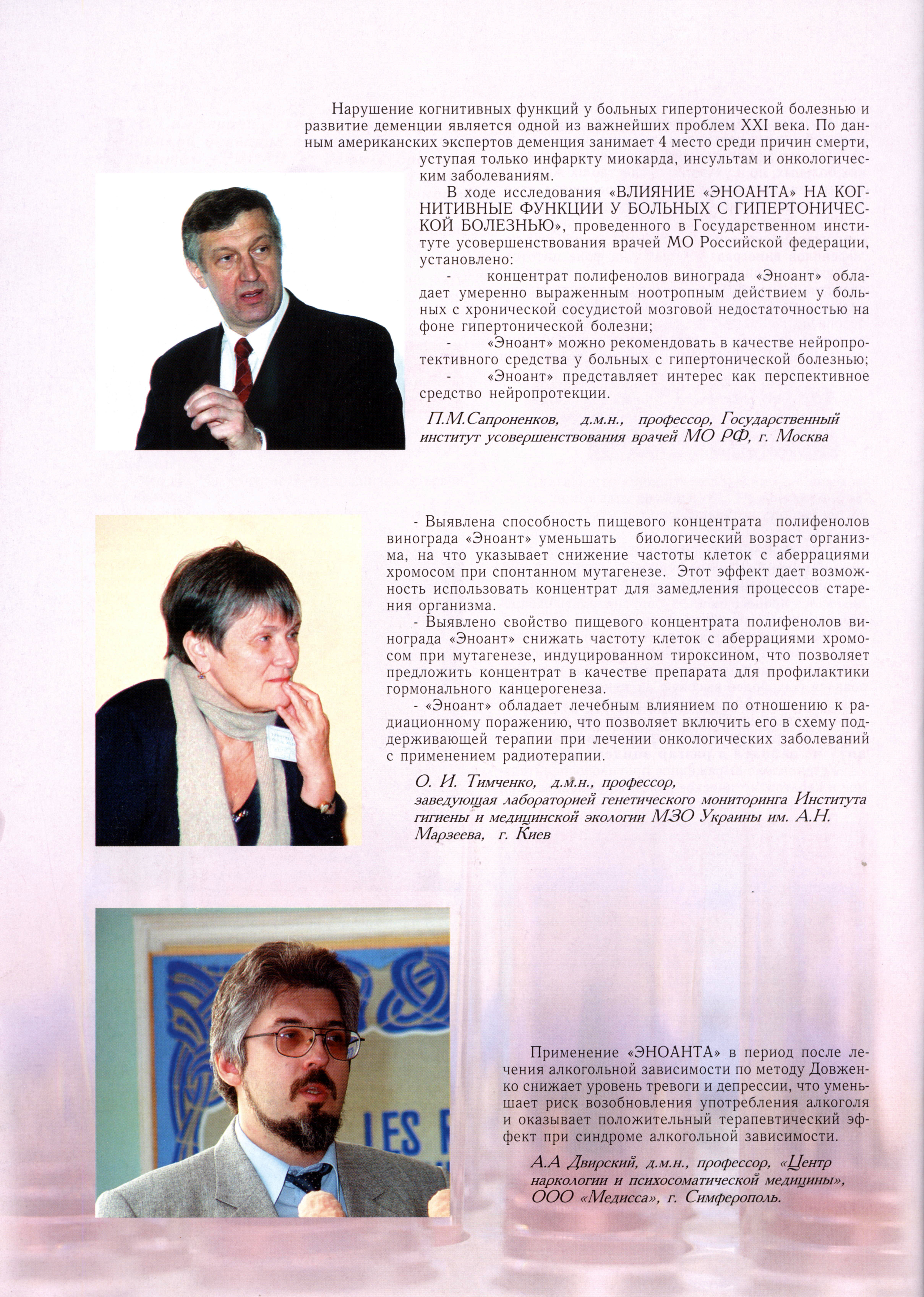 Pезультатах исследований биологической активности пищевого концентрата полифенолов винограда "Эноант". Мнения ученых:
